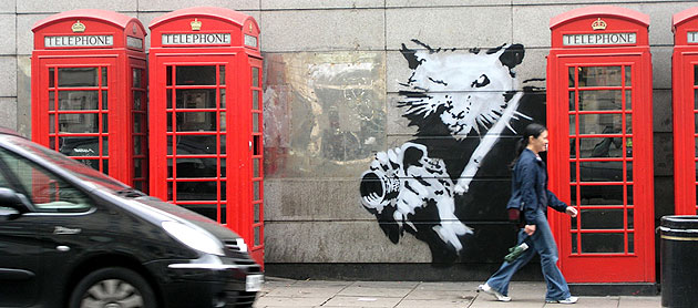 Imágenes: Superior: Una obra de Banksy (banksy.co.uk). Derecha: El muro de Gallardón creado por Desviados (desviados.com). Izquierda: Calendario del Ejército de Tierra.