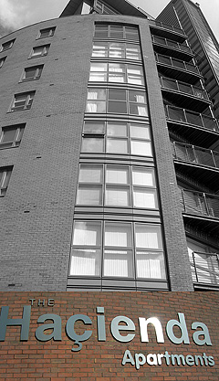 Imágenes: Free Trade Hall (flickr.com/brostad). Apartamentos The Haçienda (flickr.com/raver_mikey).